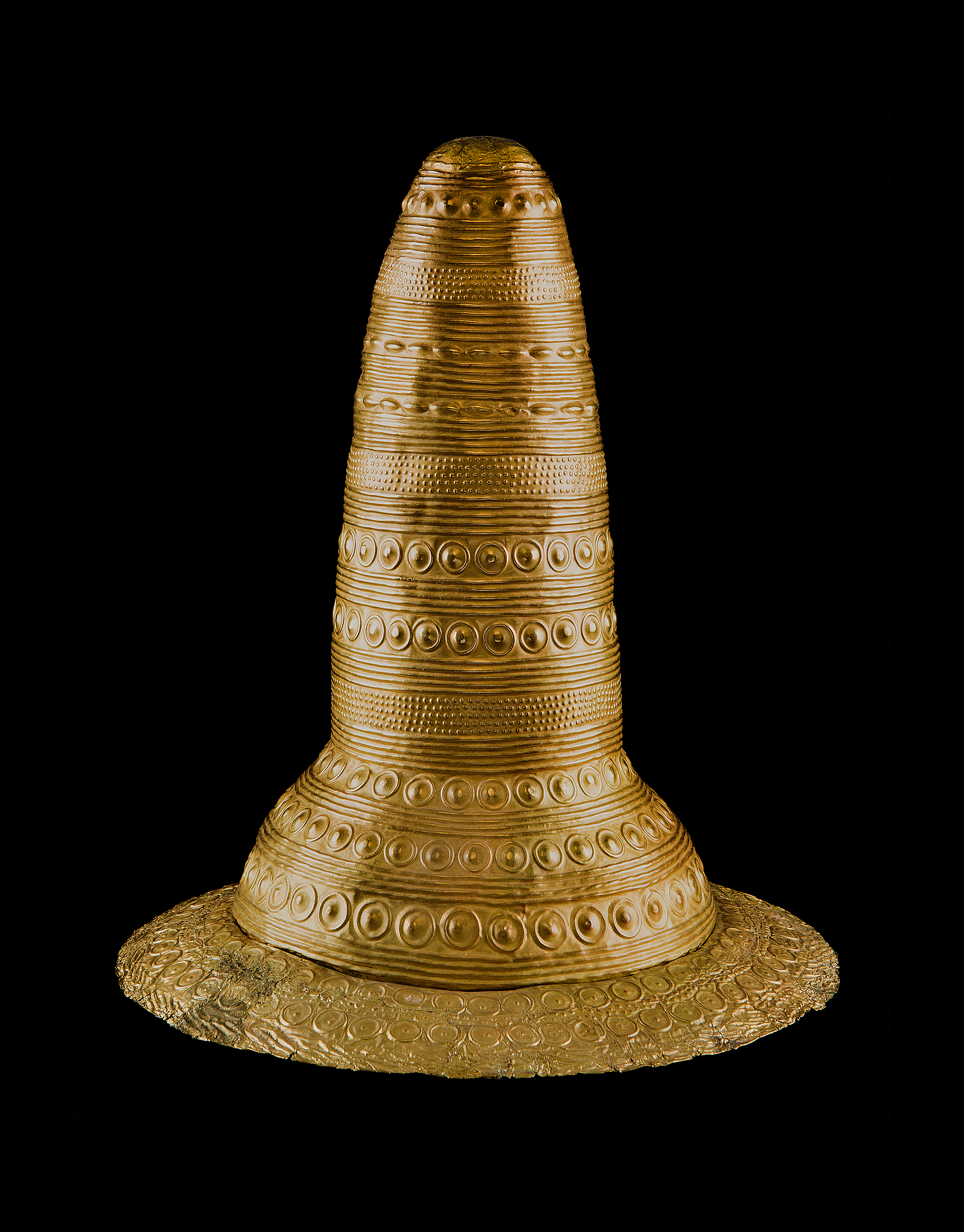Kleidungsstücke aus reinem Gold zeugen vom Reichtum und der Kunstfertigkeit der Bronzezeit. Wir würden gern wissen, wie genau und in welchem Zusammenhang solche Goldornate verwendet wurden. Sicher selten und nur von hochrangigen Persönlichkeiten, die im Rahmen von Zeremonien besonders hervorgehoben wurden, vielleicht um ihre enge Verbindung zur Götterwelt zu unterstreichen.